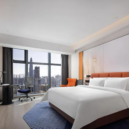 Het Hampton By Hilton Shenzhen Futian Huaqiangbei Hotel met 4 sterren bevindt zich binnen 25 minuten lopen van het Lizhi-park in Shenzhen en is voorzien van een restaurant.